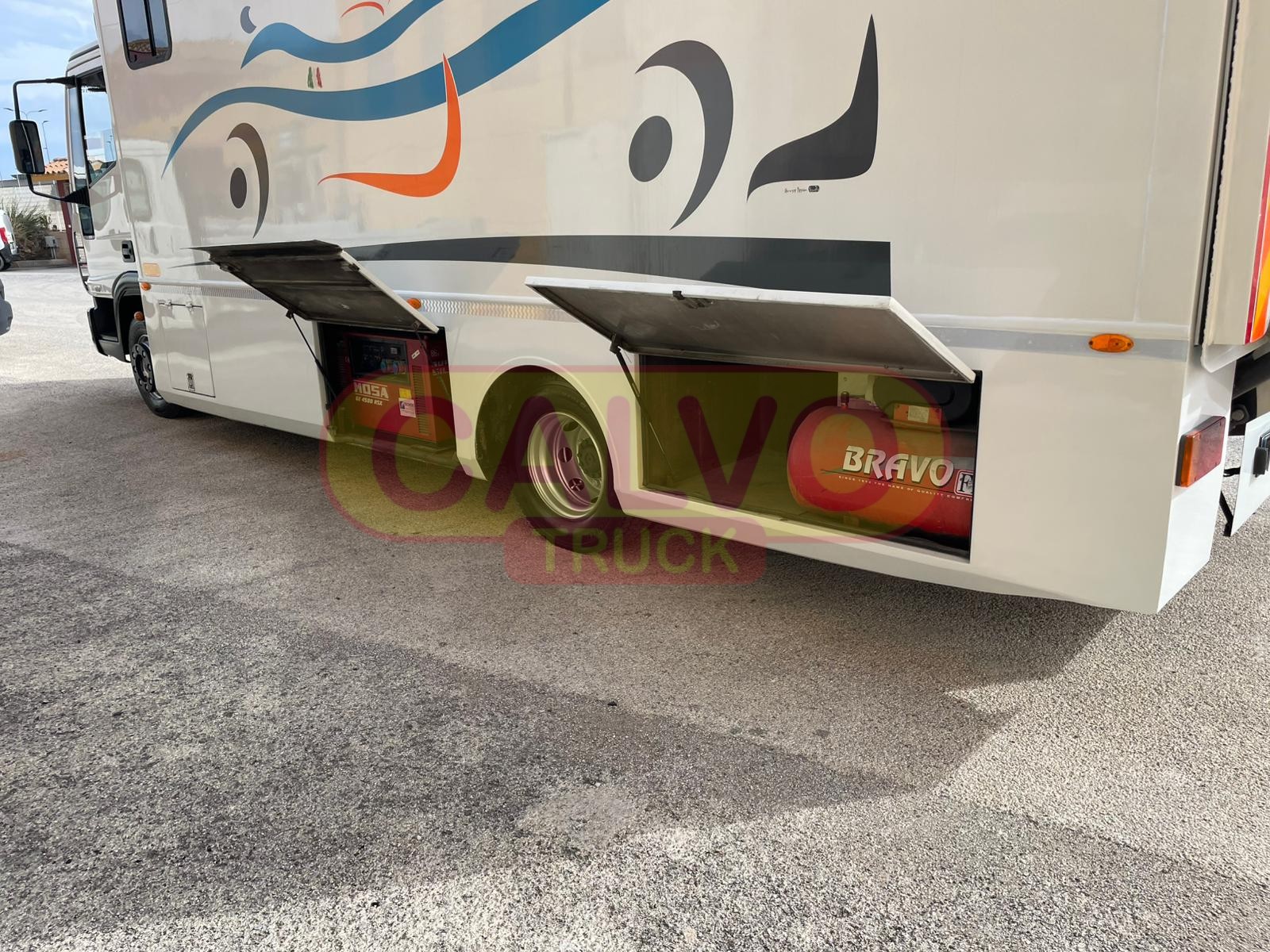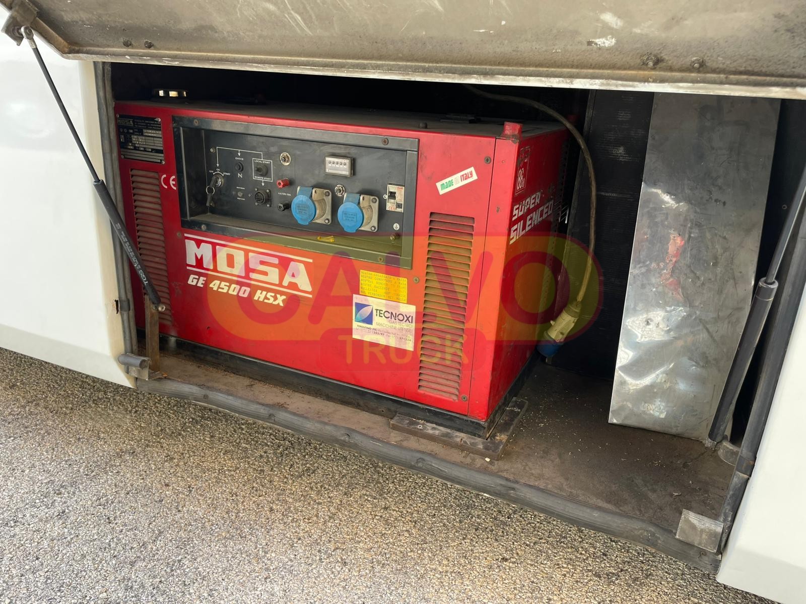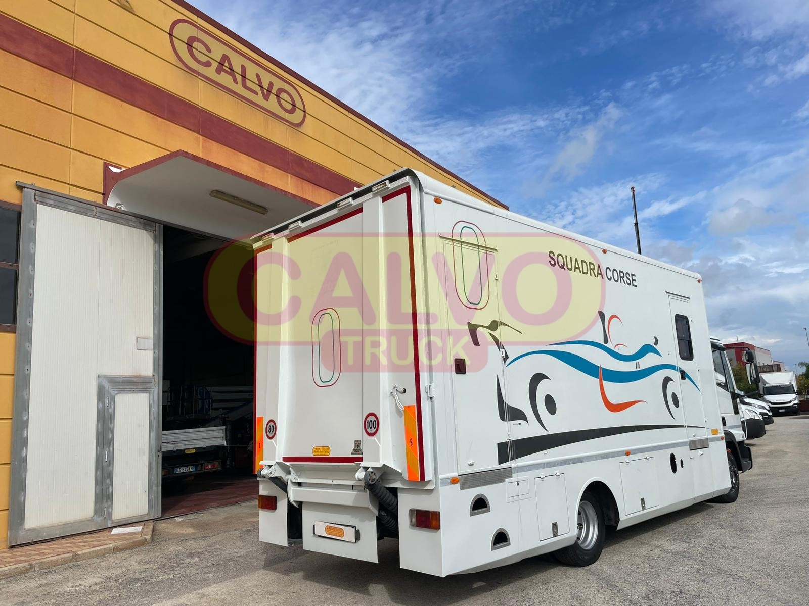 Officina Mobile dotata di rampa posteriore idraulica, impianto elettrico 220 Volt /24V., gruppo elettrogeno da 4,5 KW, compressore d’aria e vari accessori.